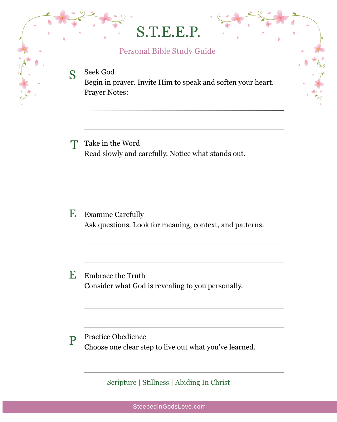 As you begin, it may be helpful to use the S.T.E.E.P. personal Bible study guide. (printable)